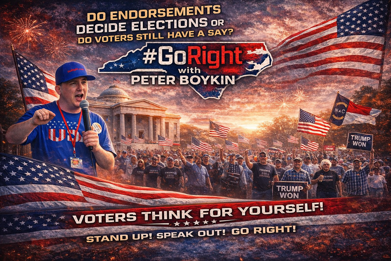#GoRight, #GoRightWithPeterBoykin, #NorthCarolinaPolitics, #NCPolitics, #LocalGovernmentMatters, #ConstitutionalRepublic, #VotersDecide, #ThinkForYourself, #InformedVoters, #VoteTheResume, #PrincipleOverPower, #GrassrootsPolitics, #WeThePeople, #ElectionIntegrity, #NCVoters, #CivicResponsibility, #IndependentThinking, #Accountability, #RepublicanVoters, #AmericaFirst